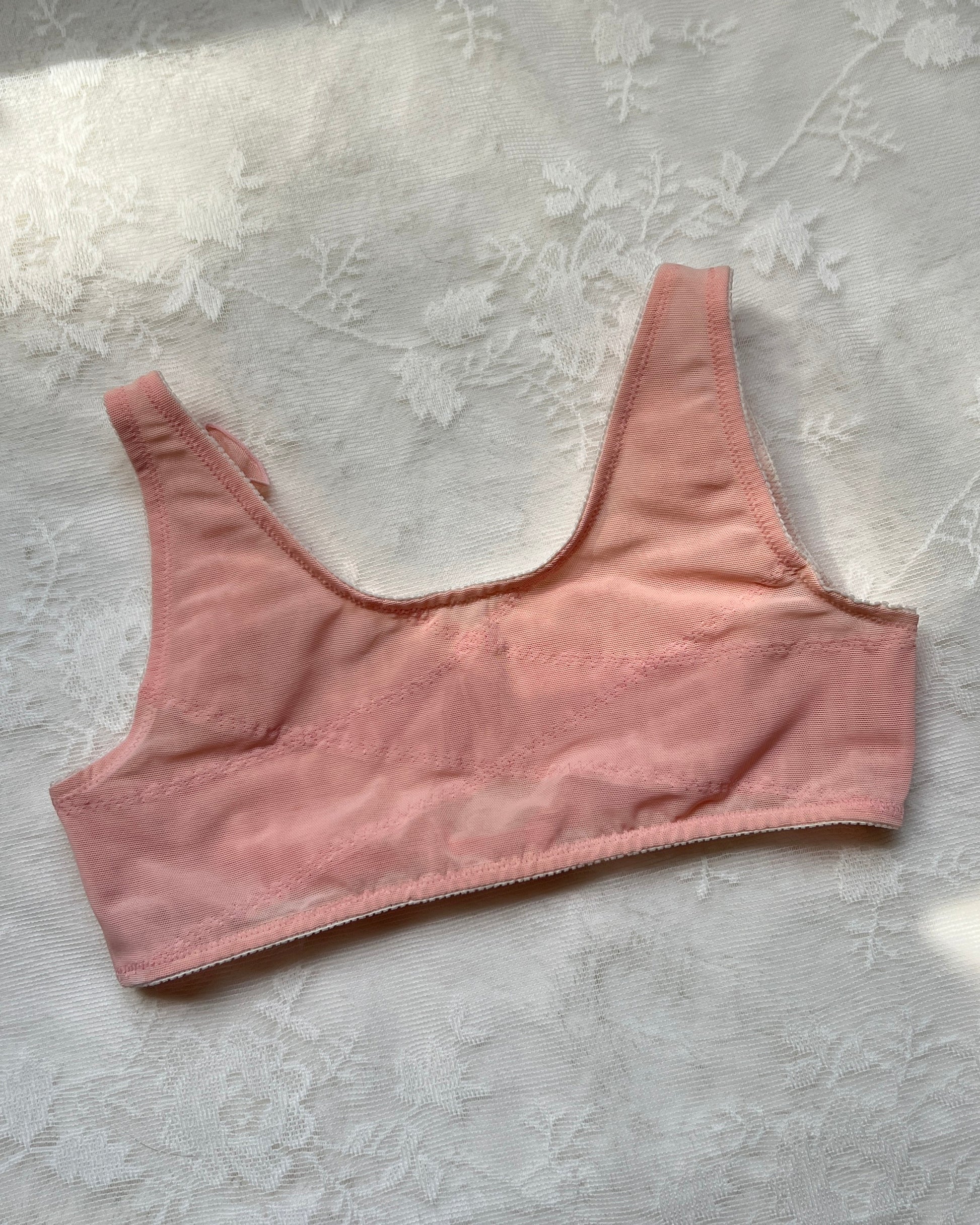 ༄ Adorable Japanese underbust garment in dusty rose featuring ruffled details with bow adorned
