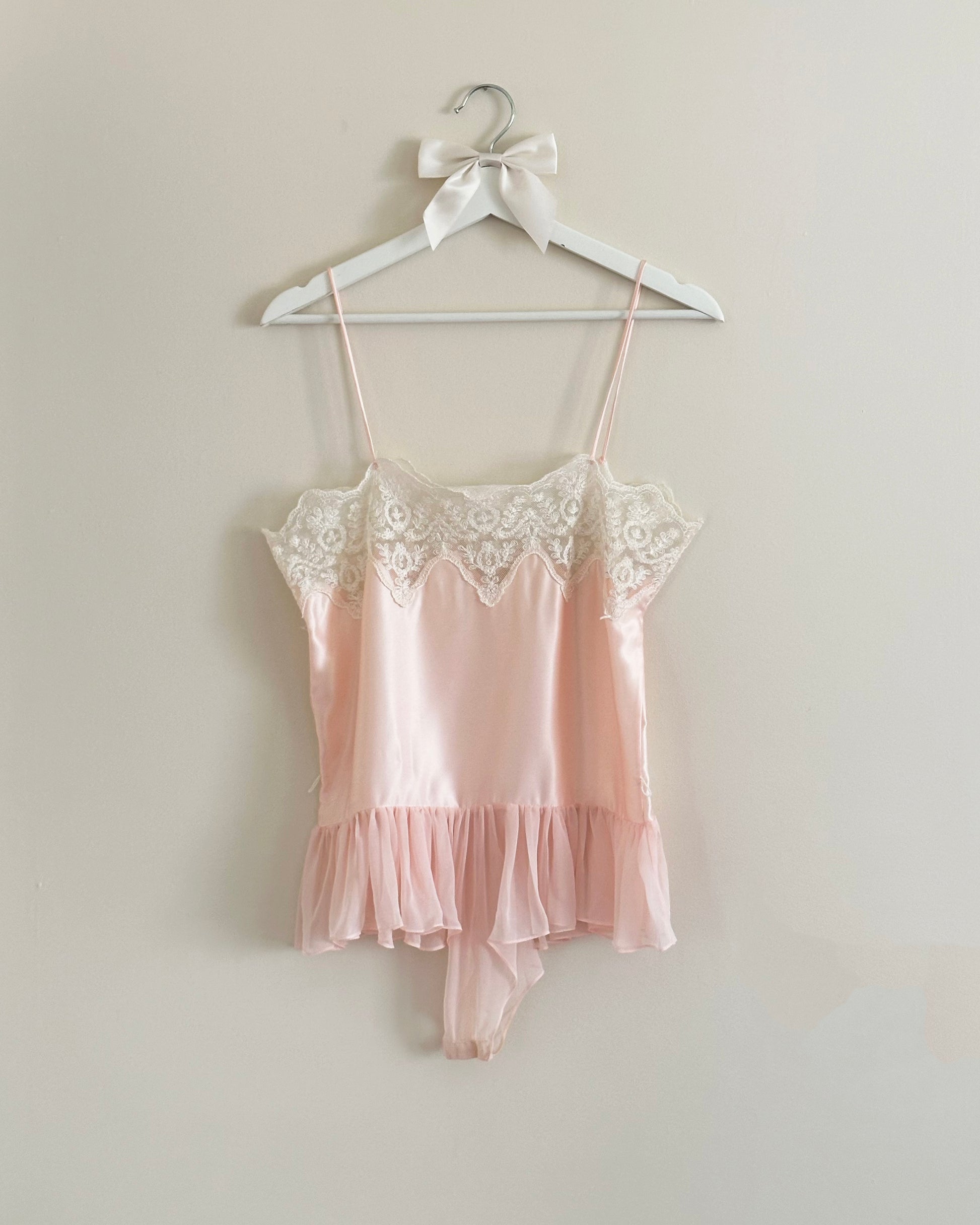 - Ballet satin cropped romperĀ featuring sheer embroidery bust with tulles mesh skirt
