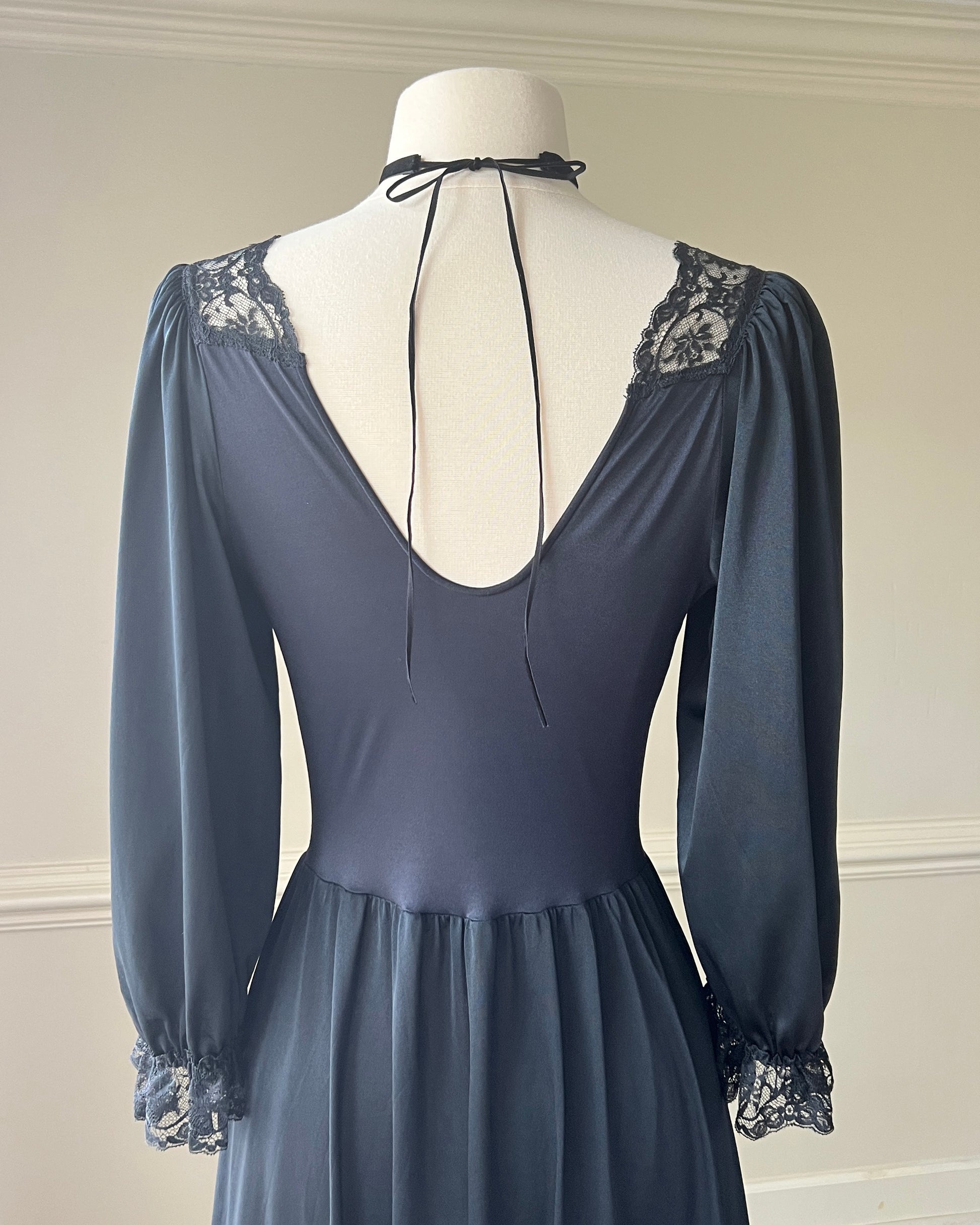 Dark Victorian Maxi Dress featuring Intricate Lace Bodice Details