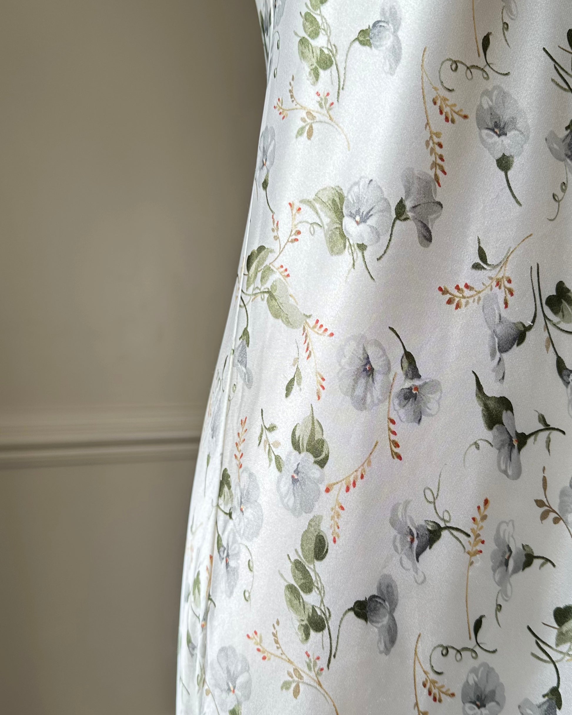 Elegant Vintage Dior Satin Maxi Dress featuring White Peony Prints