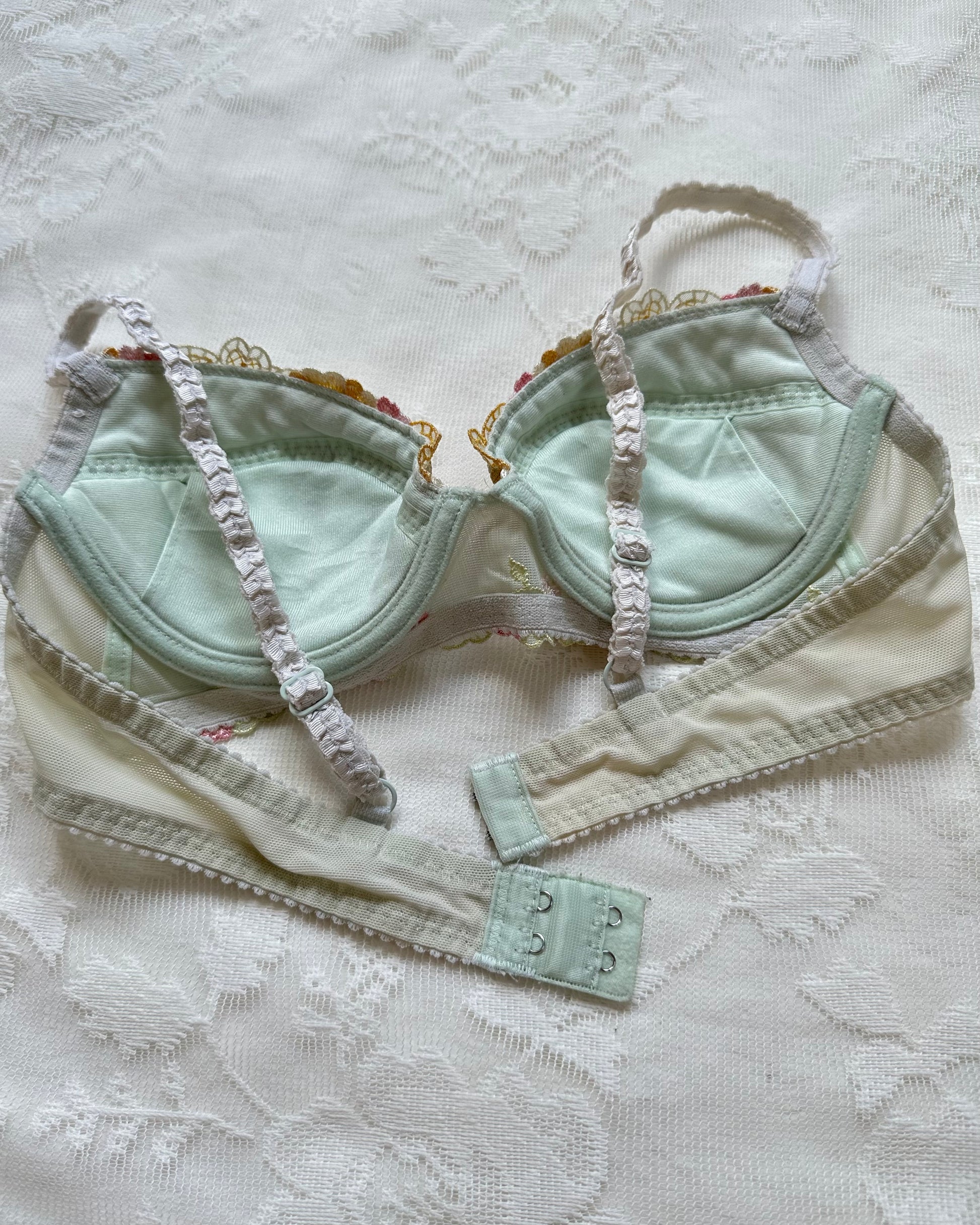 ༄ Enchanted mint green bustier bra featuring multicolored flowers embroidery