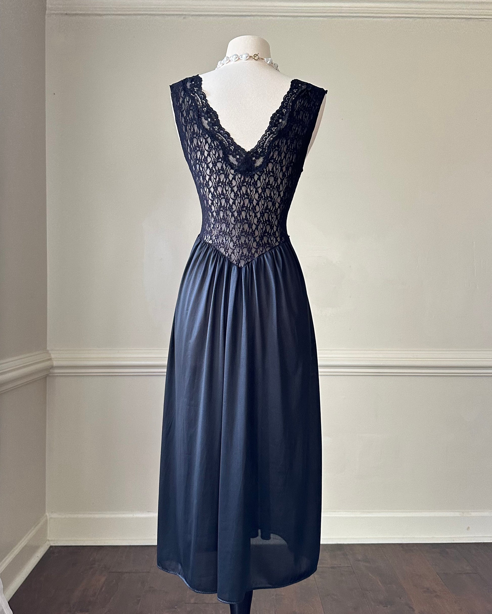 - Dark feminine midi dress featuring complete sheer lace bodice with pleated skirt