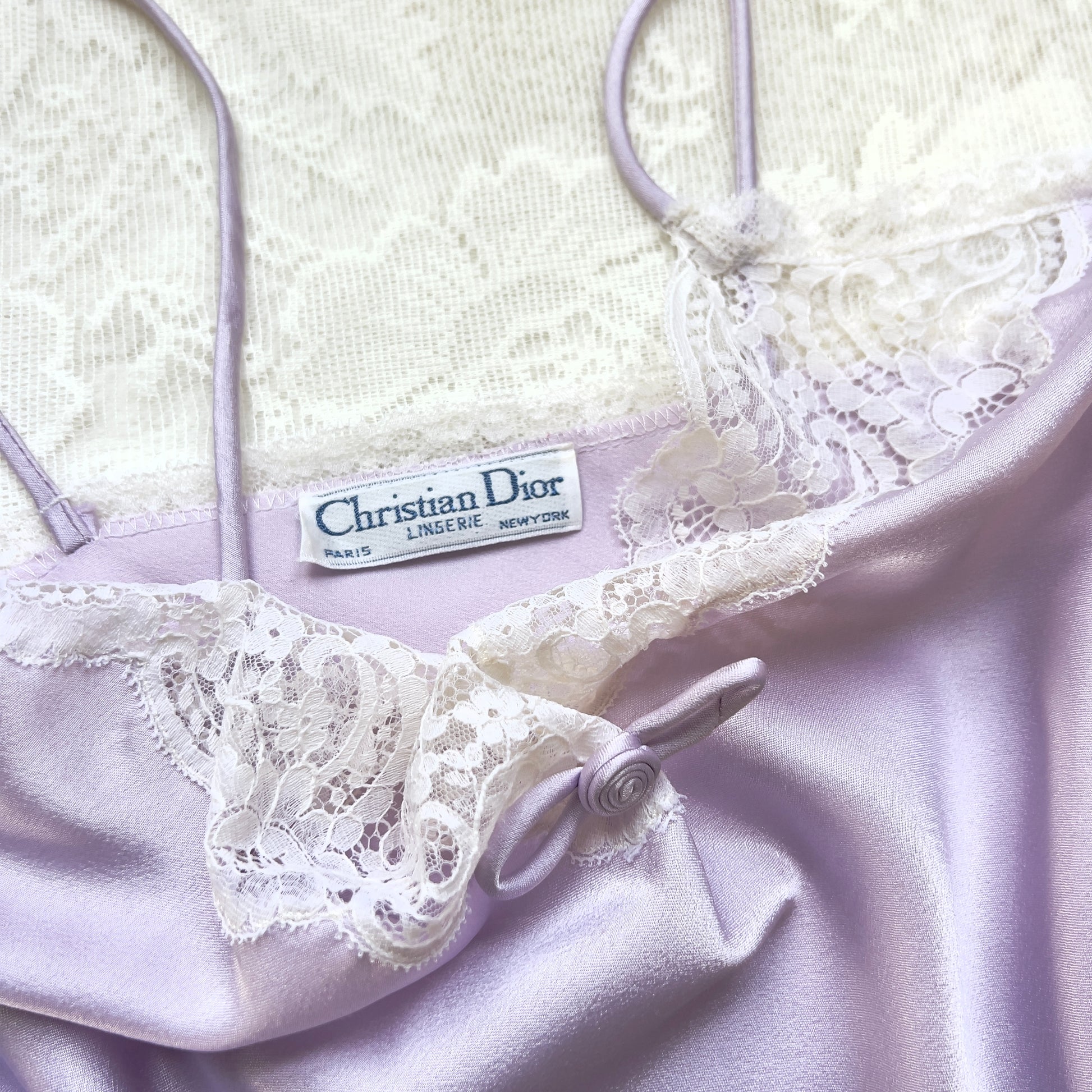 Milky Lavender Christian Dior Satin Slip featuring Paisley Laced Bustier and Lace Hemline Trimmings