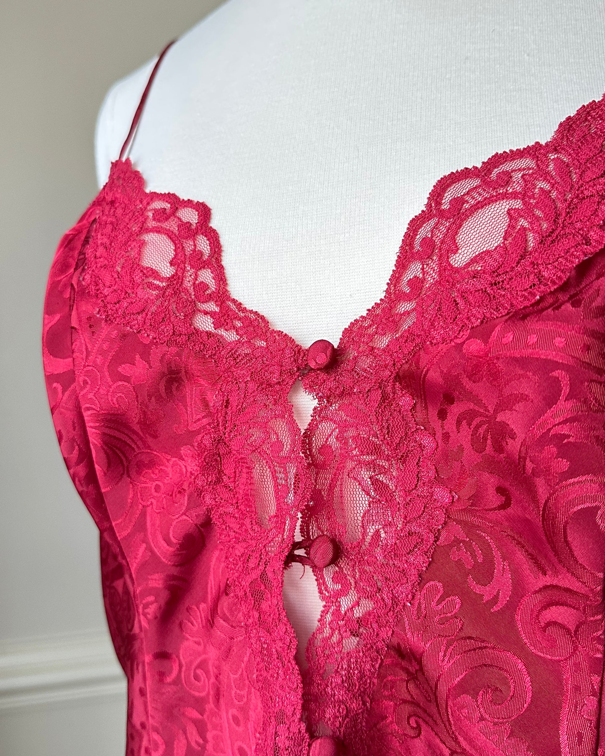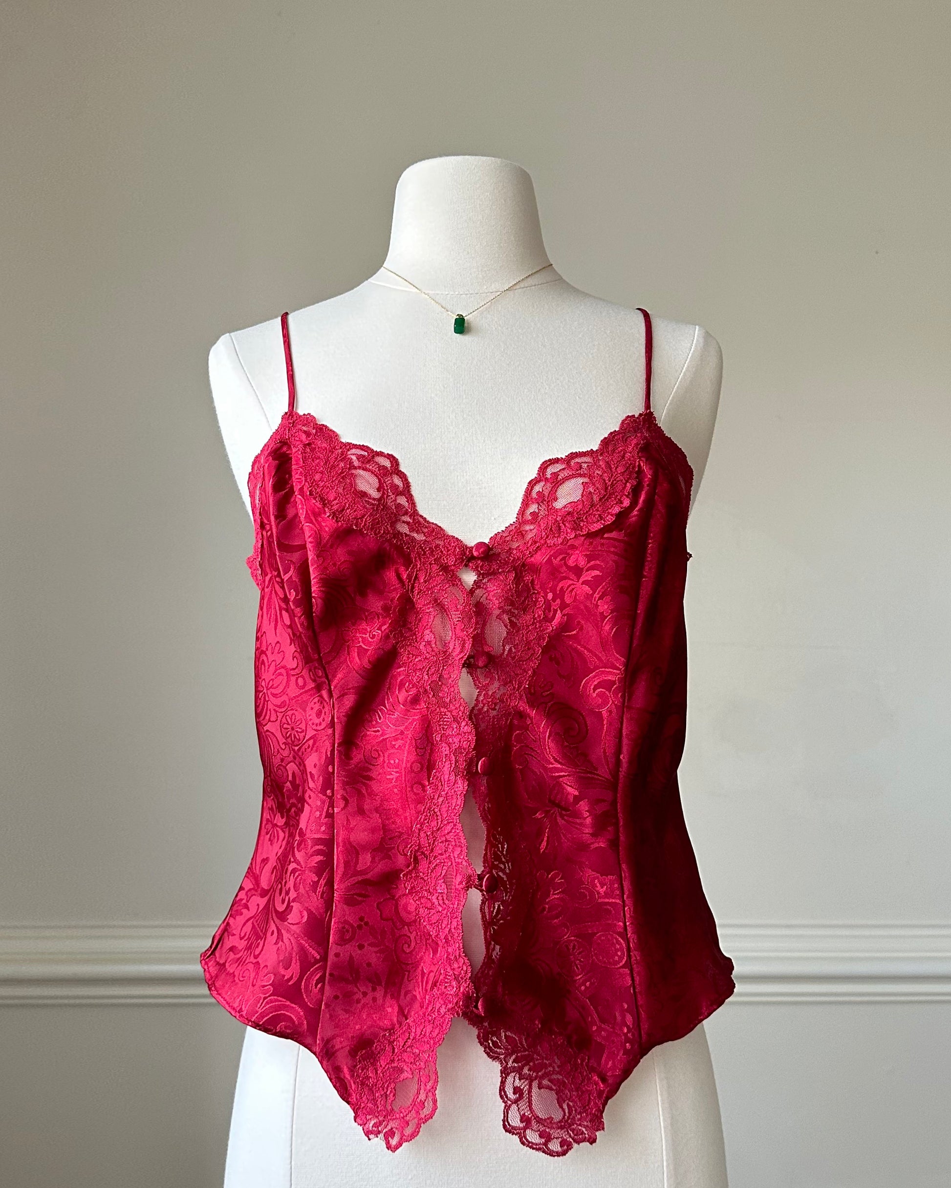 ༄ RARE Victoria’s Secret deep red cropped camisole featuring embossed paisley prints on fabric with floral lace embroidery details