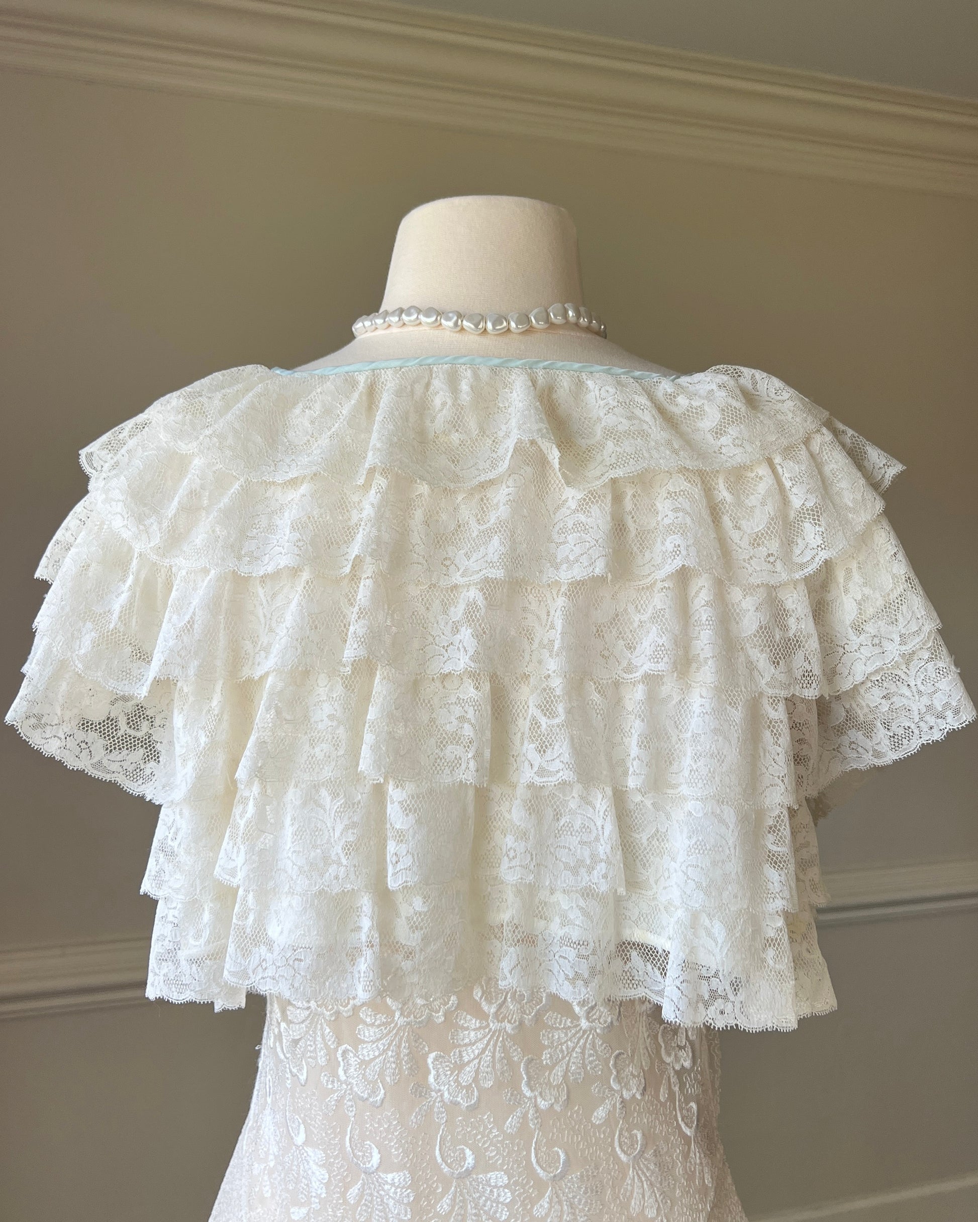 RARE Vintage Y2k Cropped Cardigan featuring Tiered Floral Lace in Vintage Cream