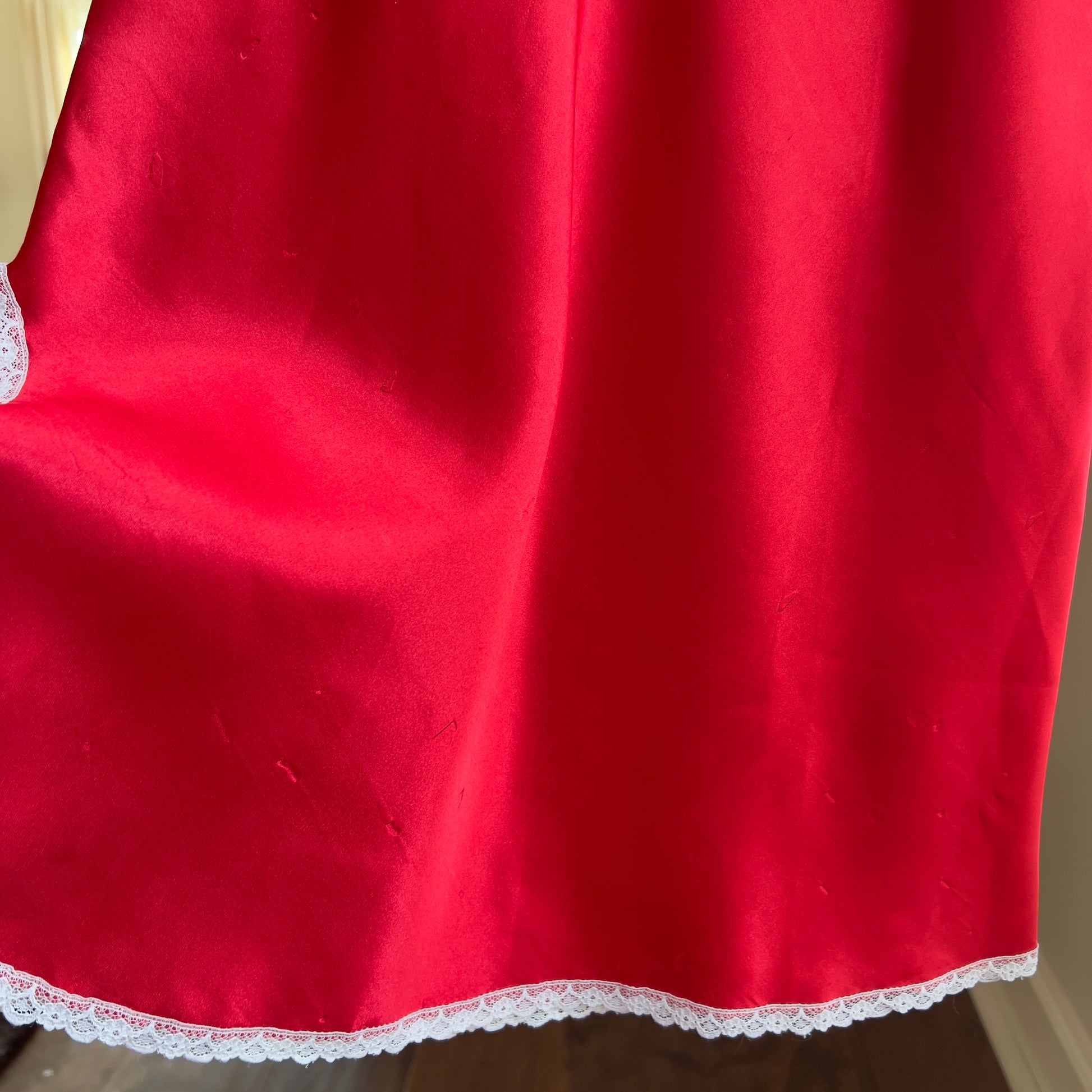 Stunning Satin Red Silk Slip Dress featuring Paisley Lace Cutout
