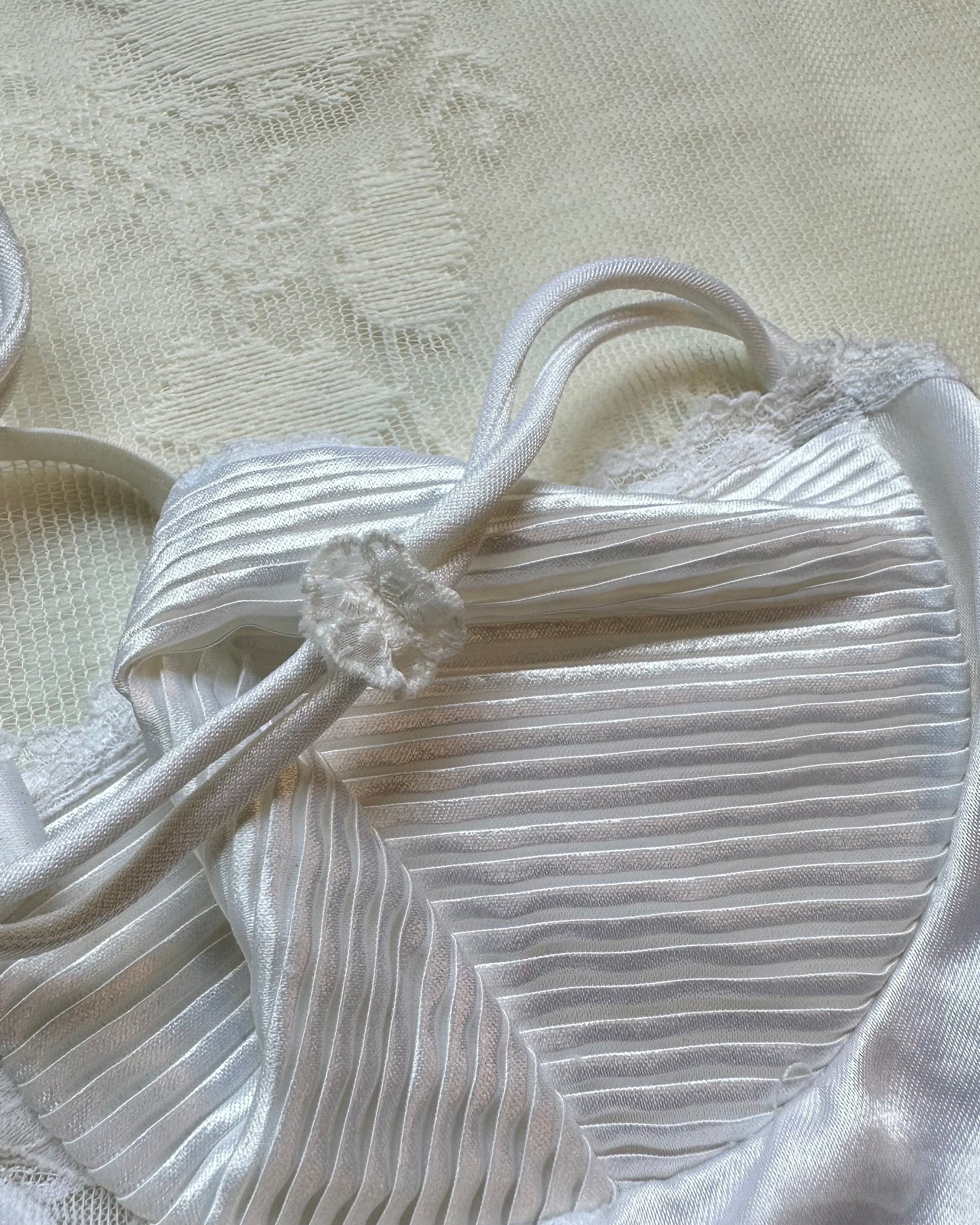 ༄ adjustable straps; unlined cup; bow adorned