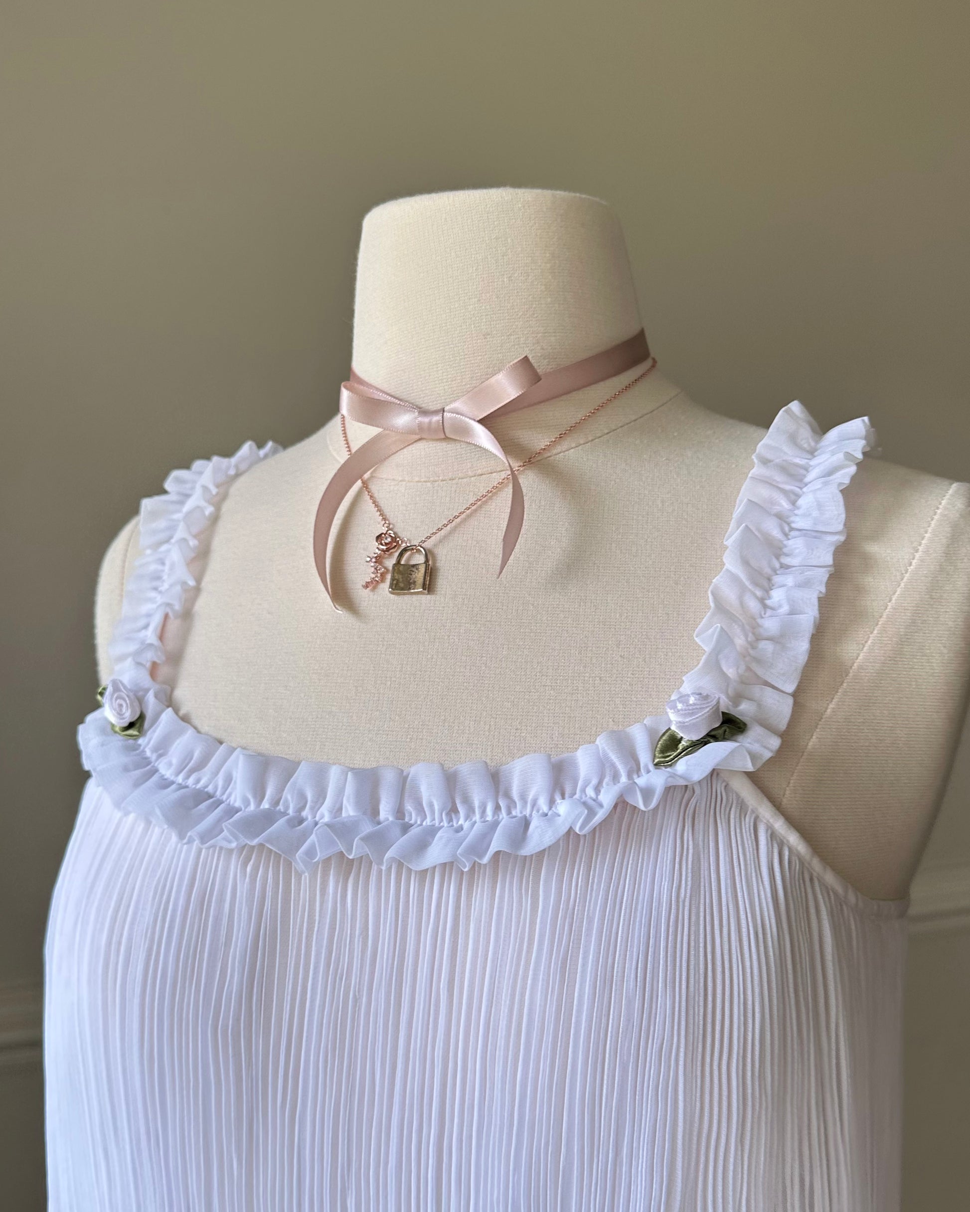 - Victoria’s Secret 2006 babydoll sheer white slip dress featuring crinkled fabric with ruffled sleeves
