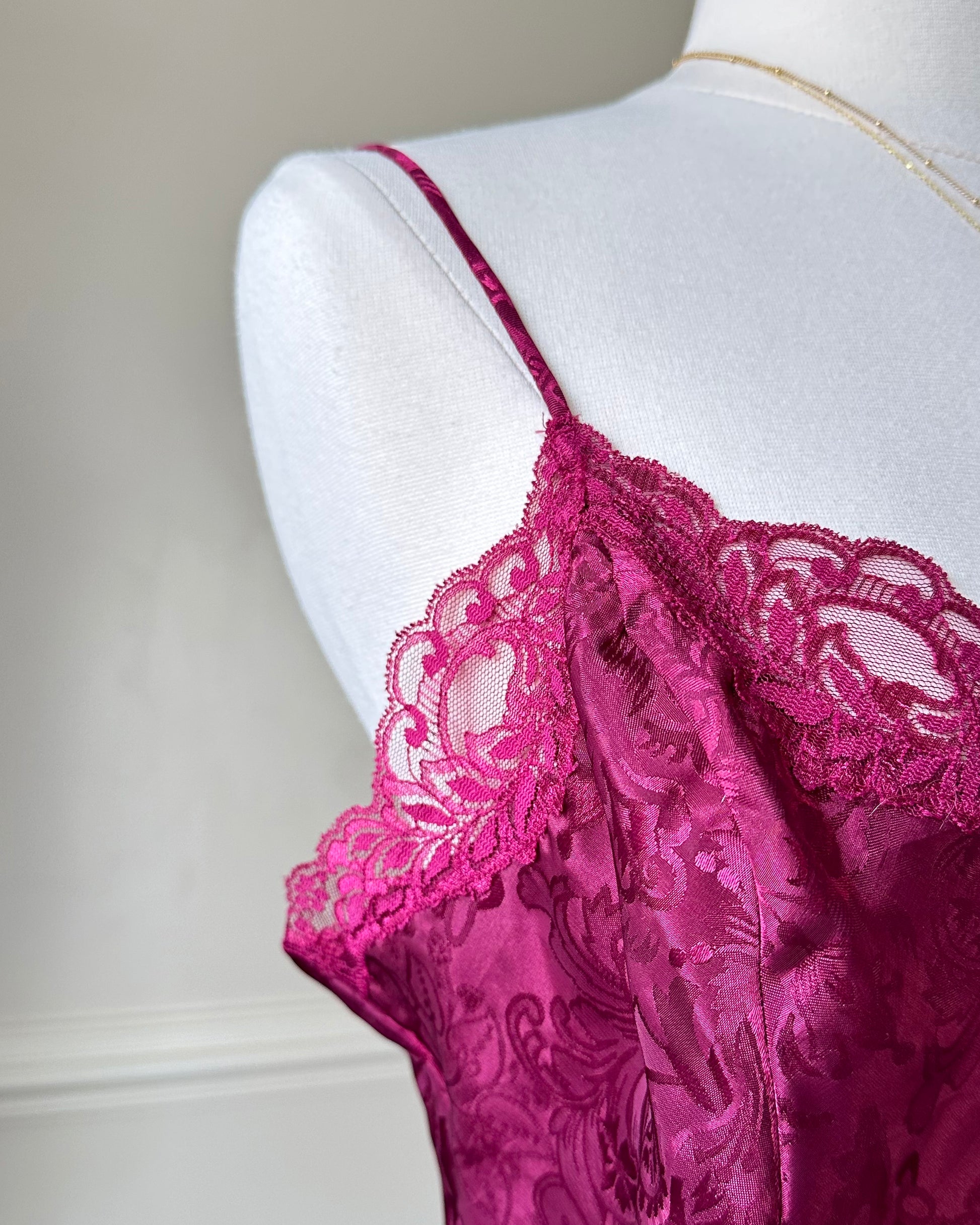 - Victoria’s Secret brocade embossed camisole in maroon purple featuring princess corset frame stitches with lace embroidery lining