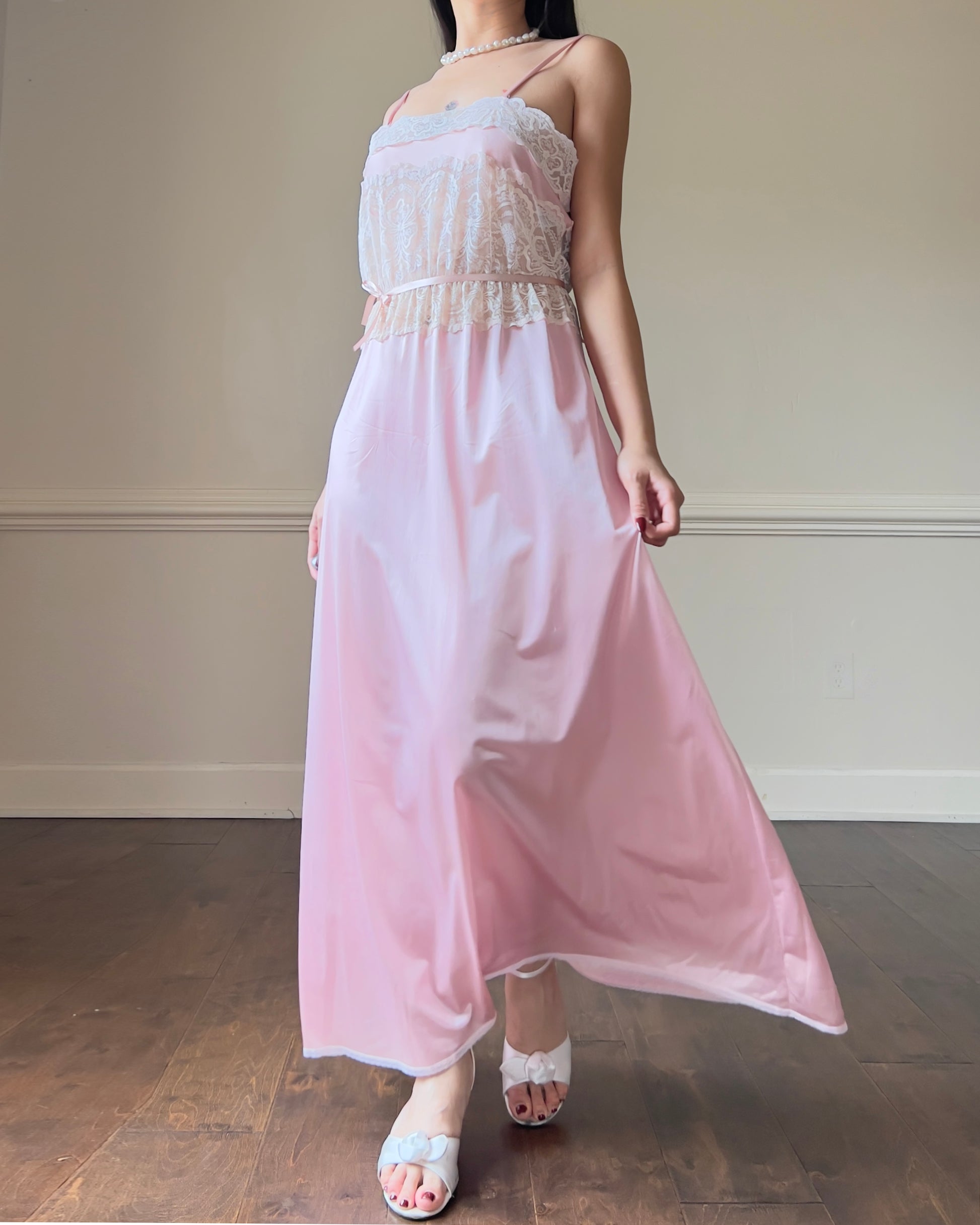 ༄ Victoria’s Secret foreign lingerie (special edition) maxi slip featuring stunning floral lace bodice cutout with satin waist ribbon