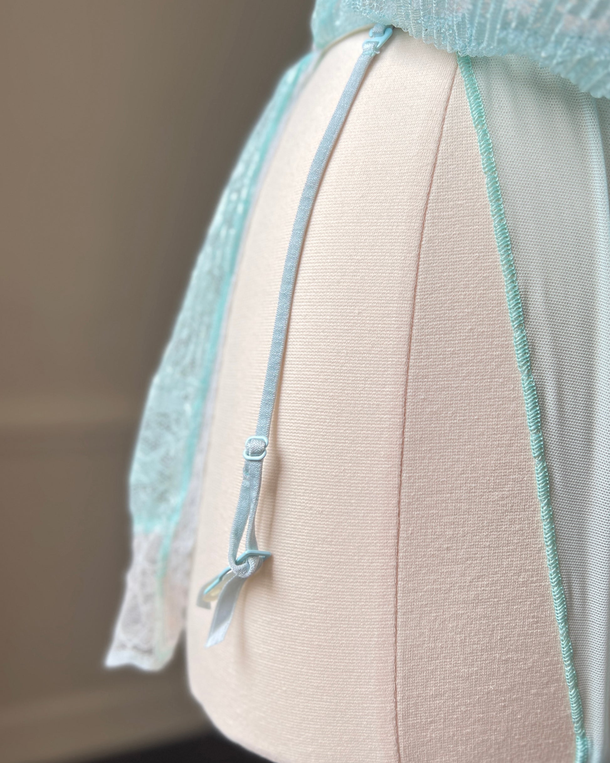 ༄ Victoria’s Secret frosty fairy split skirt featuring layered floral lace embroidery with attached panties
