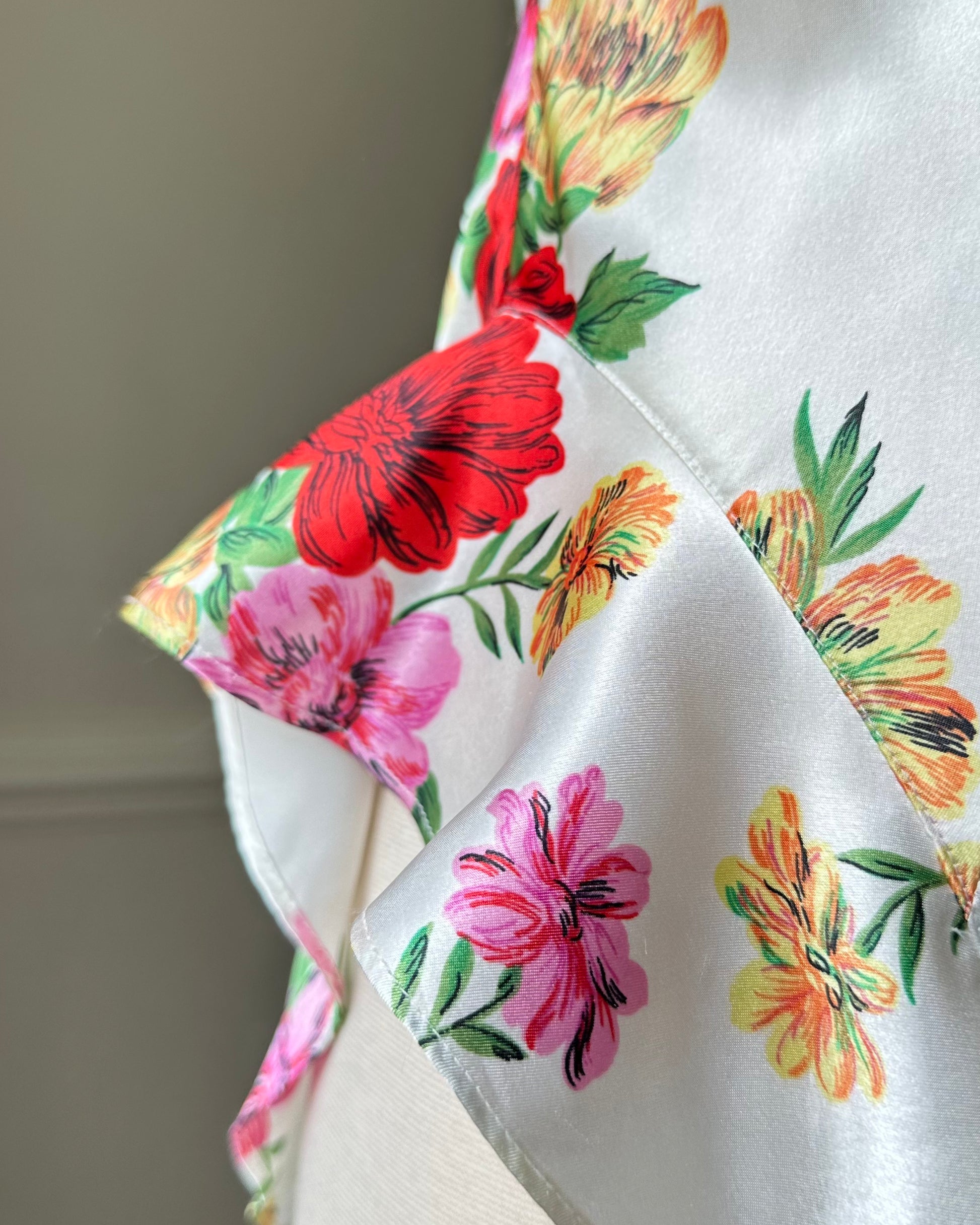 Victoria’s Secret’s Feminine Satin Bodysuit featuring Vibrant Floral Prints