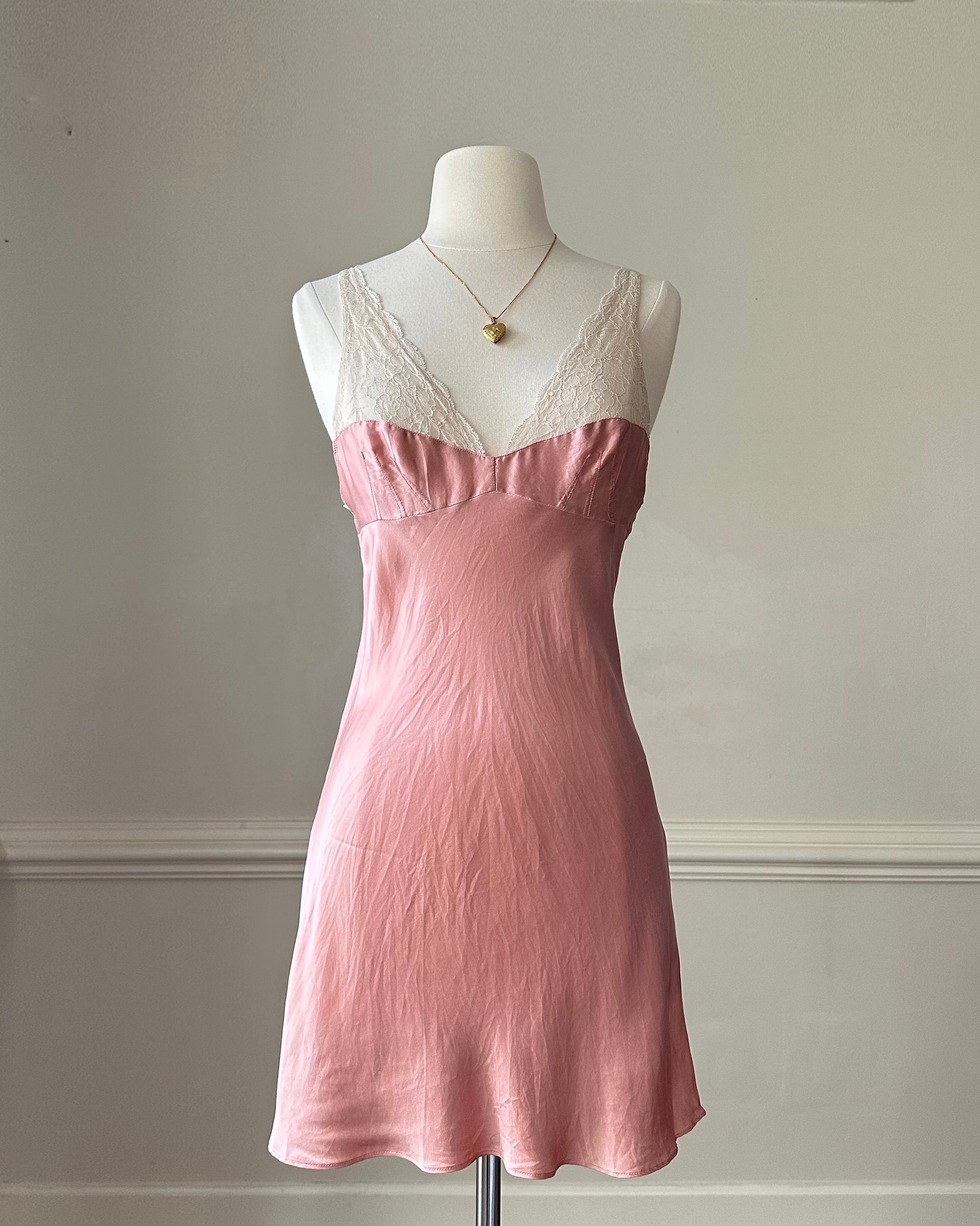 Victoria’s Secret Sunset Pink Silk Slip Dress featuring Floral Embroidery Cup
