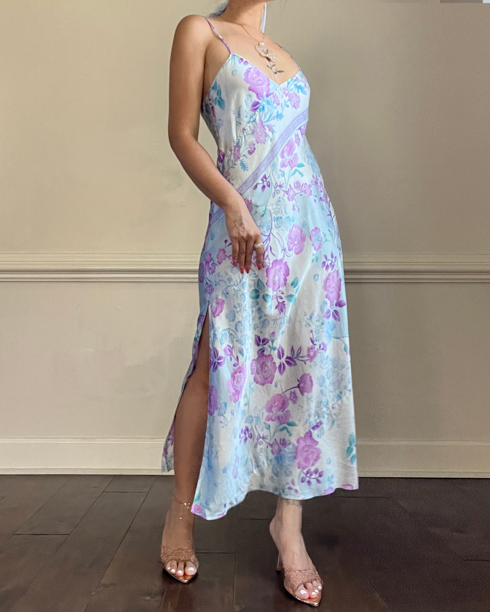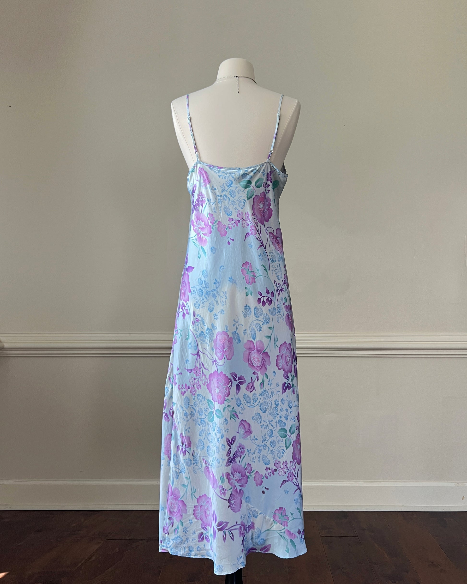 – Features a bias-cut silhouette with thin adjustable straps and gentle drape