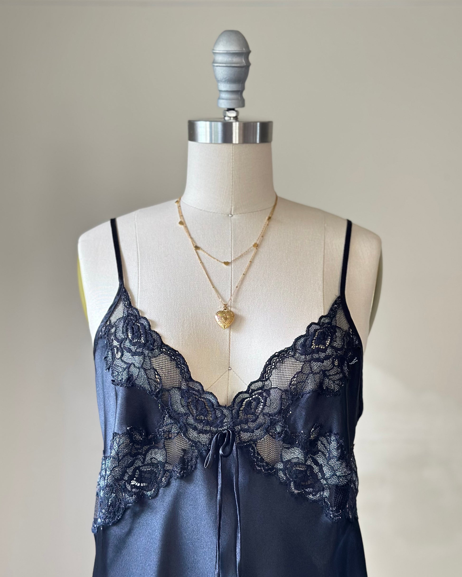 ✨ Vintage Jones New York Black Lace Satin Midi Slip Dress